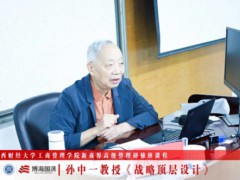 9月20-21日,江西财经大学新商界高级管理研修班93班、95班的同学们共同迎来了由孙中一教授带来的《战略顶层设计》课程。课堂上,已年逾86岁的孙教授精神矍铄、思维敏捷,极富教学激情,授课时引经据典、