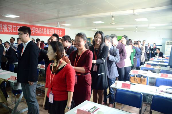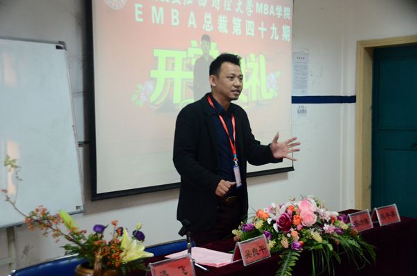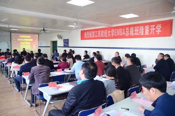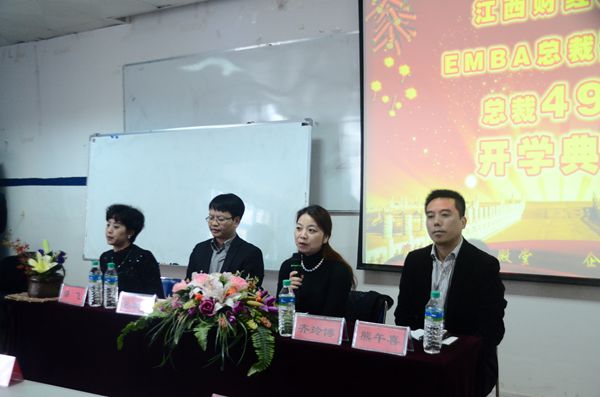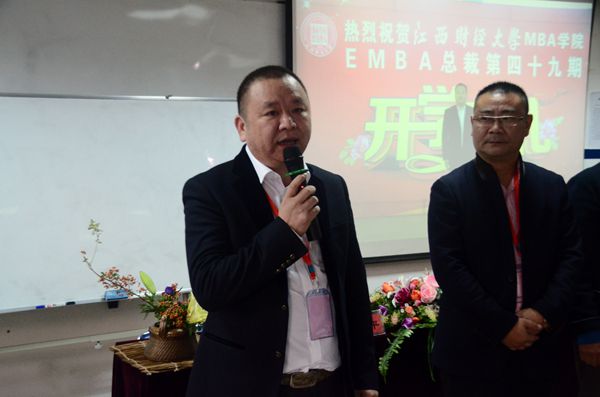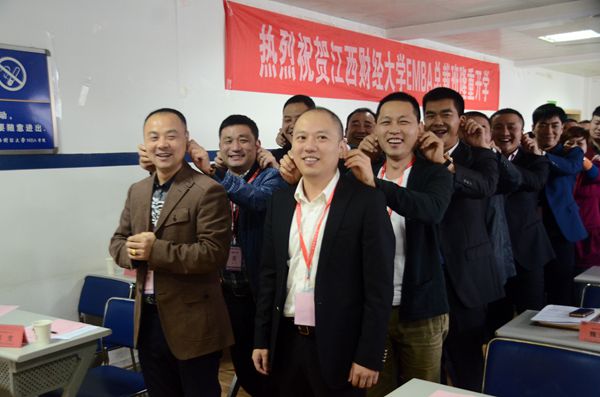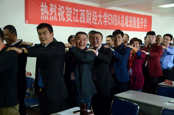 2014年11月6日下午2时,江西财经大学MBA学院EMBA总裁四十九班开学典礼于江西财经大学青山园盛大举行!不同的年龄,不同的性格相聚一堂,互不相识的一群企业精英,他们有了一个共同的名字,总裁四十九班的同学。让我们借开学典礼之东风,弘壮志,近师友。新的学期,新的起点,让我们在未来的一年中多读书、多参与、多交流。走进校园,放下沉重的负担,忘却尘世的喧嚣,摒却红尘的浮躁。饮一杯清茶,带着淡然,伴着同学,好好读书。